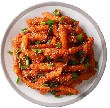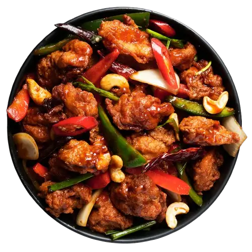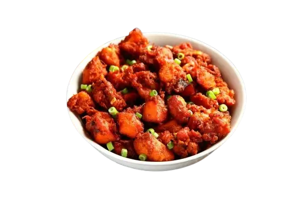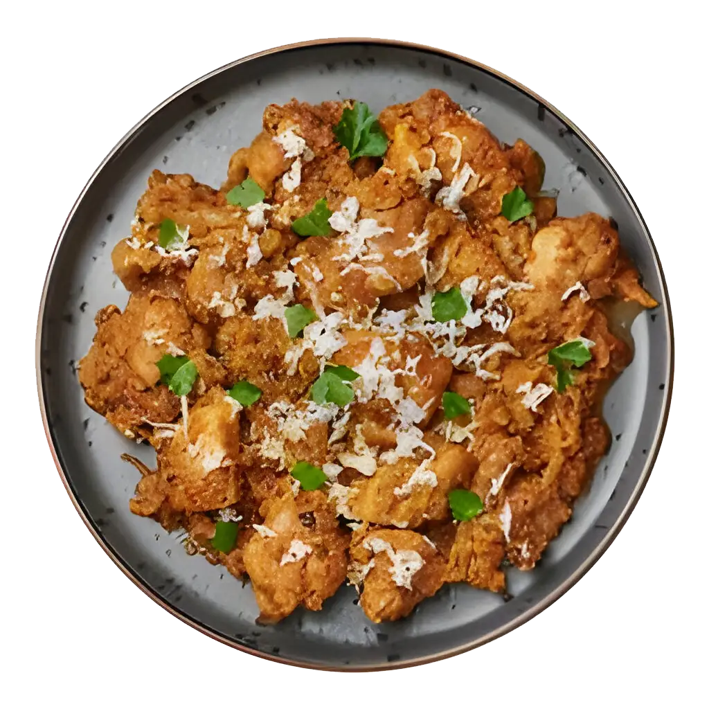 A South Indian-style spicy, deep-fried chicken dish, packed with bold flavors and aromatic spices.