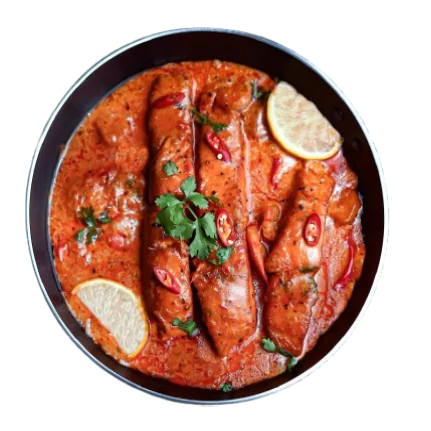 Juicy, char-grilled chicken tikka cooked in a rich, spiced tomato gravy, perfect with naan or rice.